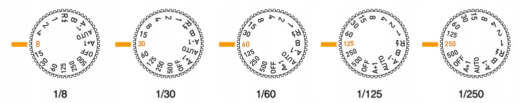 Przysłony – f/5.6, f/6,7, f/8, f/11, f/16, f/22