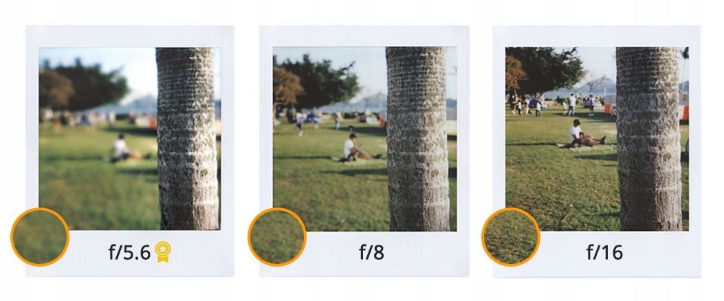 Sześć przysłon do wyboru. Największa to f/5,6 (odpowiednik 35 mm: f/2,4). W połączeniu z kwadratowym formatem filmu daje niesamowity efekt bokeh. SF70 oferuje najpłytszą głębię ostrości spośród wszystkich aparatów natychmiastowych, z wyjątkiem specjalnych modów.